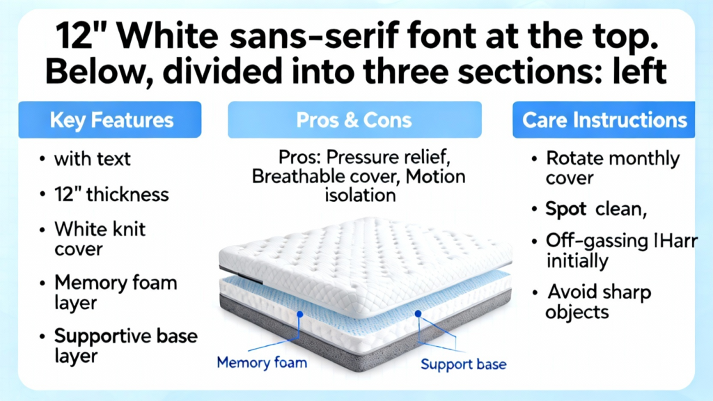 12″ White Knit Memory Foam Mattress Review and Guide
