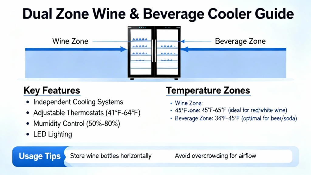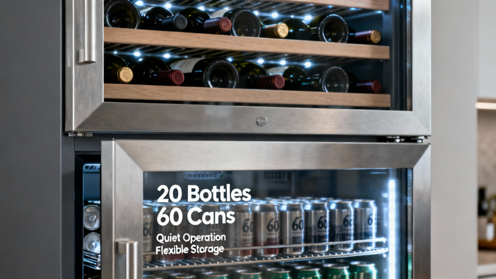 Dual Zone Wine Cooler: 20 Bottles, 60 Cans, Quiet & Flexible Read More »