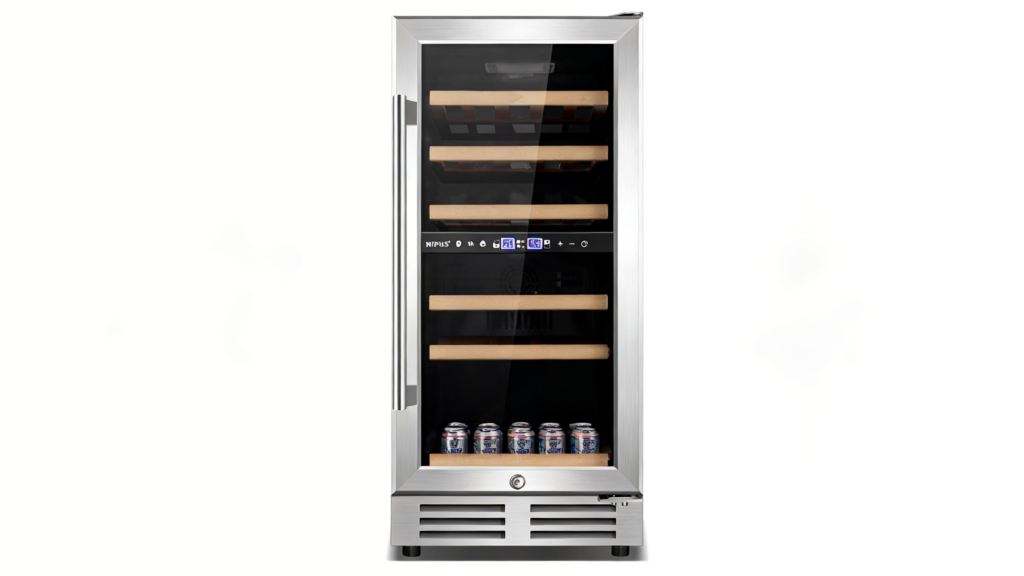 Nipus 24 Inch Single Zone Beverage Refrigerator with 190 Can Capacity and Adjustable Shelves for Efficient Beverage and Snack Storage