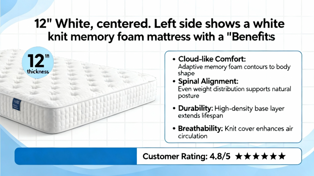 12″ White Knit Memory Foam Mattress Review and Benefits