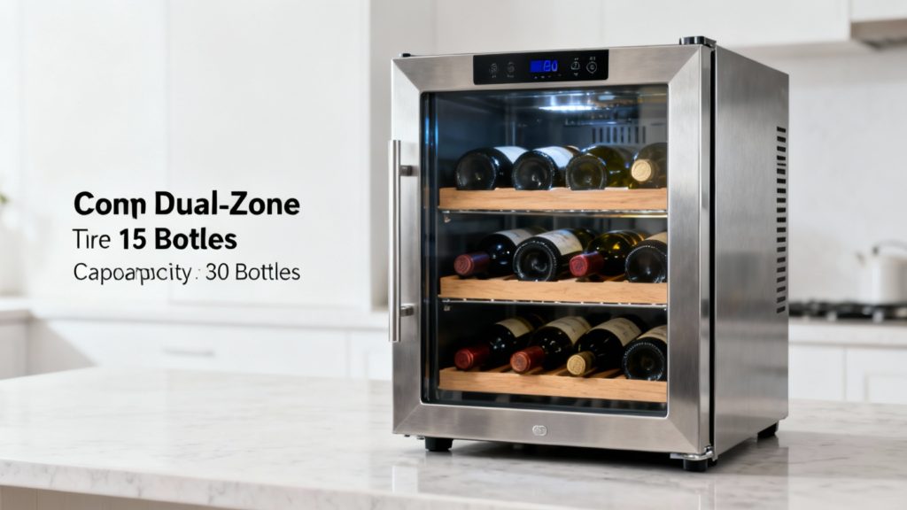 Accommodating 30 bottles in a unit under 15 inches wide is an engineering feat. It requires intelligent layout and component selection. The use of removable solid beechwood shelves is key; beech is a hard, stable wood resistant to warping and moisture, ensuring it can bear weight without affecting air circulation. This compact design is paired with a quiet compressor (rated at 38dB) and an R600a refrigerant, a more environmentally friendly option. The double-paned tempered glass door provides crucial insulation against external temperature fluctuations and blocks UV light, which can cause wine to become “light-struck” and develop off-flavors, a phenomenon documented in enology resources.