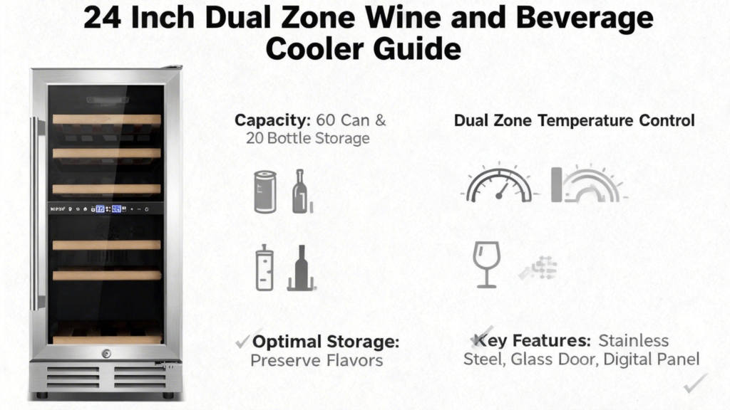 Explore the 24″ Dual Zone 60-Can & 20-Bottle Wine Beverage Cooler to elevate your home’s beverage experience with cutting-edge technology and elegant design.