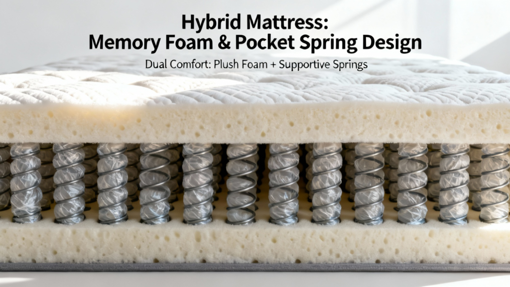 The hybrid mattress design with memory foam and pocket springs sounds like a great solution for balancing comfort and support.